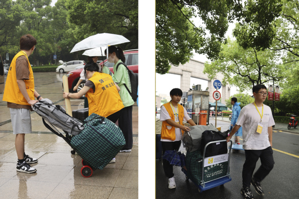 新生们从父母手中接过的一袋袋一箱箱行李,拥抱后仍未消散的余温,走走停停回望的不舍,望着远去的家长背影,心中流露的是不舍和期待。设计学院百余号师生的“小黄人”满面笑容接过行李,满怀欢心温暖同行,引导和帮助新生办理报到注册、领取校园卡、搬运行李、宿舍入住等,他们的身影无处不在,又有不一样的辛苦,却收获了同样的快乐,用真诚的服务、朴实的行动欢迎学弟、学妹们来校学习。