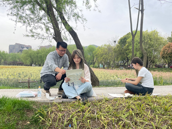 长兴太湖图影湿地是太湖图影旅游度假区的核心景区,师生们纷纷被山图水影间的自然之美吸引,沉浸在这七彩油菜花海中,画笔在画布上跳跃,色彩在指尖流淌,用画笔记录下这美好瞬间。此次课程实践基地授牌仪式的顺利举行,标志着双方合作迈出了坚实的一步,为学院师生提供更广阔的实践平台,也为湿地文化园注入更多创新设计活力。