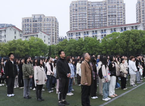 在全体师生的注目礼下,英姿飒爽的国旗护卫队队员们迎着朝阳护送鲜艳的五星红旗进场,行礼完毕,伴随着庄严的《中华人民共和国国歌》,五星红旗冉冉升起,迎风飘扬。在场的每一个人向国旗行注目礼,深怀对祖国无限的热爱和崇高的敬意。