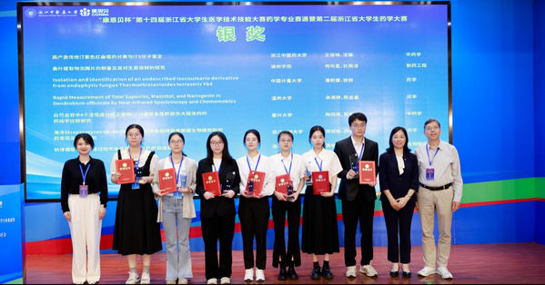浙江省大学生药学大赛由浙江省大学生科技竞赛委员会主办,该项赛事旨在推动我省药学教育改革,创新实践教学体系,加强学生基础理论、基本知识、基本技能培养,提升学生实践能力、创新精神和团队合作意识,全面提高学生的综合素质和人才培养质量。本届比赛由浙江中医药大学承办,省内20多所高校参赛,决赛阶段包括“药学基础实验知识考核”“通用技术和操作考核”和“项目PPT汇报与答辩”等环节,对参赛学生的药学知识、实践操作、创新能力等进行全面考察,最终评出金奖2项,银奖7项,铜奖18项。