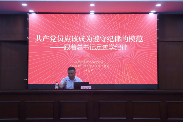 李立军以梳理习近平总书记在福建、浙江、上海等地工作期间关于党的“六大纪律”的重要论述和典型事例为切入点,认真分析相关论述的背景条件、关键内容与重要意义,引导党员师生准确把握新修订《条例》的内涵要义和实践要求,切实把遵规守纪印在内心,内化为日用而不觉的言行准则。