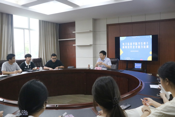 为进一步强化学生新闻宣传队伍建设,电子信息学院于6月26日举行学生骨干新闻宣传业务能力培训会。本次培训会由院党委书记主讲,全体负责新闻宣传工作的学生干部参加。
